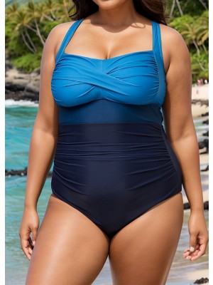 Flatter your figure with elegance! This blue color block one-piece features a sweetheart neckline, adjustable straps, and ruched cross-front for tummy control. Fixed pads and wireless support ensure comfort. Perfect for swimming costume for women plus size.
