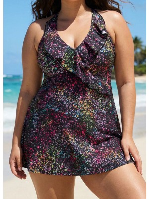 Add charm to your beach look with this swimming top! Featuring a Vneck with playful double ruffles and dot texture,it's a flattering and affordable bathing suit option for plus size or curvy women.Removable pads and adjustable straps provide comfort and fit.