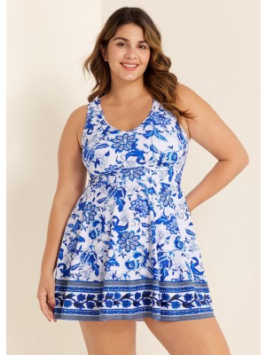 Curvy Black Leaf Print Modest Swimsuit And Swimwear Swimdress Set