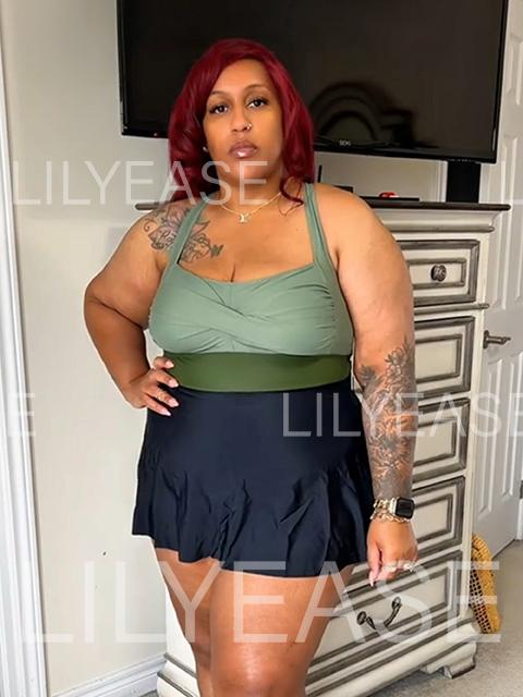 New LILYEASE ® Green And Black Twist Front Patchwork Adjustable Straps Swimwear Tankini Top