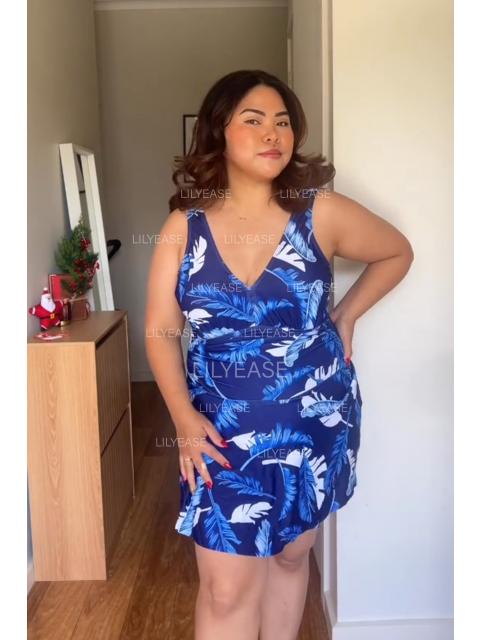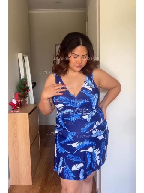 It is super comfortable to wear, the wide shoulder straps are not tight, the pleated design is very figure-flattering, and the blue plant print is refreshing, so awesome!