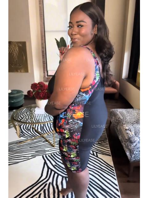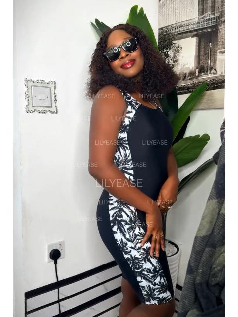 Experience sporty elegance with this one piece swimming suit for women featuring a scoop neck and removable pads.The bold leaf print on shoulders and sides contrasts with classic black,perfect for plus size womens bathers and curvy women in swimsuit.Explore now.
