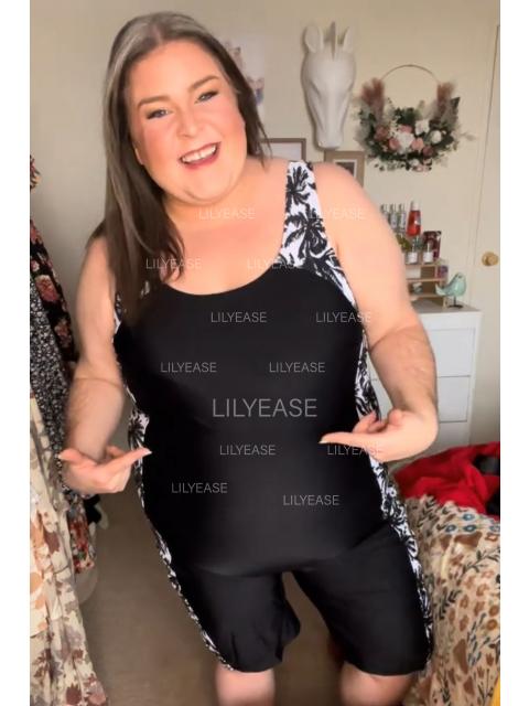 Hot LILYEASE ® Plants Print Scoop Neck Athletic Boyleg Tummy Rash Guard Control One Piece Swimsuit