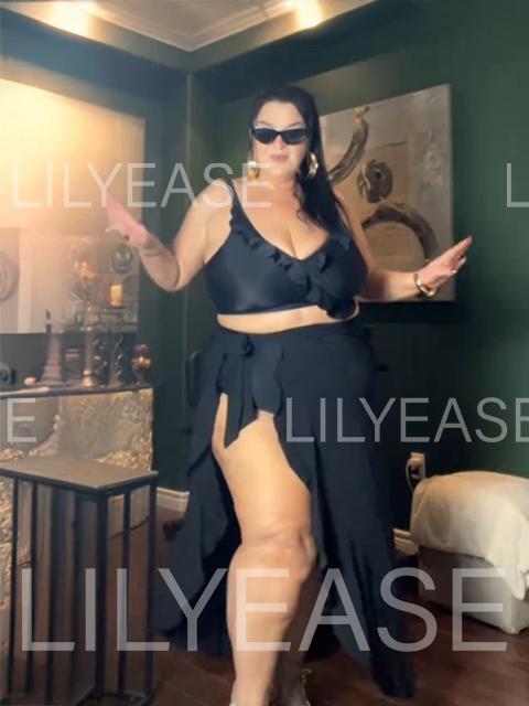 Final Sale LILYEASE ® Plus Size Black With Frill Details Modest Elegant Bikini Swimsuit Top