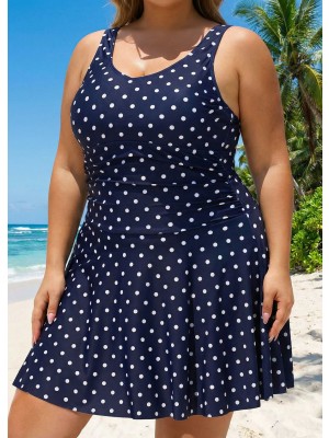 Classic polka dot two piece swimsuit with ruched Vneck top featuring removable pads and tummycontrol midrise boyshorts.A flattering,affordable choice for plus size bathing costumes and swimwear for curvy ladies.