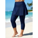 Navy Blue Flared Plus Size Modest Swimsuit Skort with Capri Leggings