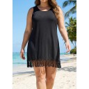 Black Round Neck Sleeveless Tassel Cover Up