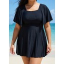 Black Ruffle Sleeves Square Neck Modest Plus Size Swimdress Swimsuit Top