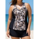 White Floral Zipper Curvy Swimwear Bathing Suits Tankini Top