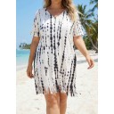 V-Neck Slit Fringe Trim Tunic Cover Up
