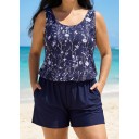 Curvy Purple Floral Modest Wide Straps Pocket Women's Swimsuit One Piece Swim Romper