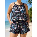 Pink Floral High Neck Vintage Pocket Curvy Women's Swimsuit One Piece Swim Romper