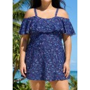 Navy Floral Off The Shoulder Flattering Curvy Women's Swimsuit One Piece Swimdress