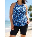 Blue Floral Print High Neck Flattering Curvy Women's Swimsuit Tankini Top