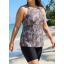 Curvy Brown Tropical Leaf High Neck Vintage Women's Swimsuit Tankini Top