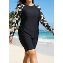 Black Leaf Upf50+ Long Sleeves Modest Plus Size Women's Swimsuit Tankini Top