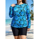 Curvy Blue Floral Upf50+ Long Sleeves Vintage Women's Swimsuit Tankini Top
