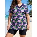 Green Leaf V Neck Upf50+ Short Sleeves Modest Padded Curvy Swimsuit Long Tankini Top