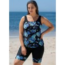 Plus Size Black Floral Scoop Neck Sleeveless Vintage Padded Curvy Swimsuit Tankini Set
