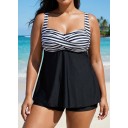 Classic Modest Black Stripe Twist Front Tankini Top