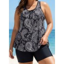 Black Paisley Loose Fit Plus Size Women Tankini Top