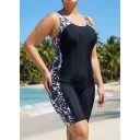 Black And White Coconut Tree Print Round Neck One Piece Swimsuit