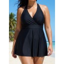 Black V Neck Mesh Fashion Plus Size One Piece Swimdress
