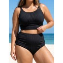 Black Puckered Halter Plus Size Modest Bikini Set