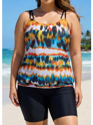 Final Sale LILYEASE ® Vintage Geometric Print Double Straps Tankini Top
