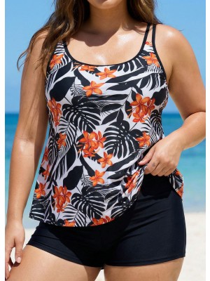 Go bold in this geometric plus size blouson tankini top.Scoop neck,double straps,and fixed pads offer support and style,perfect for a vintage swimwear look.